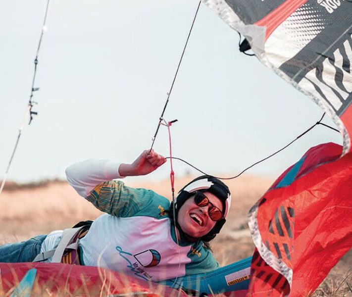 Instruktøren gennemgår sikkerhedssystemer, quick release og selvredningsteknikker. Du øver at sætte kiten korrekt op, tjekke liner og bruge sikkerhedsudløsere, så du kan reagere roligt, hvis noget går galt.